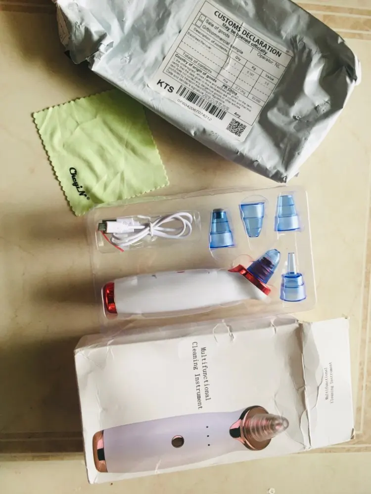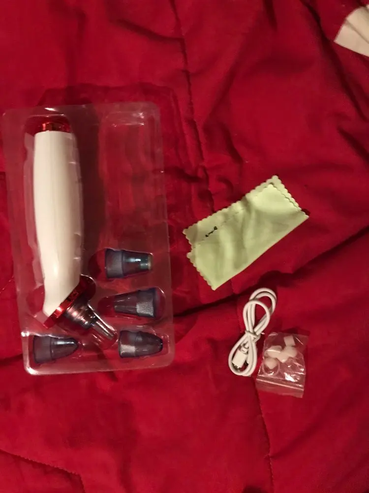 1 x Blackhead Remover 1 x USB charging cable 5 x Probes 2 x Rubber rings 5 x Filter cotton